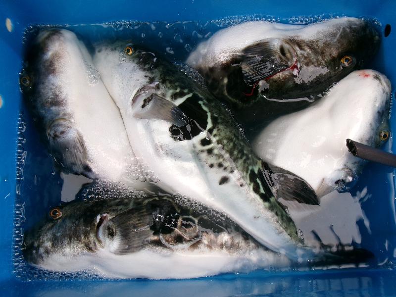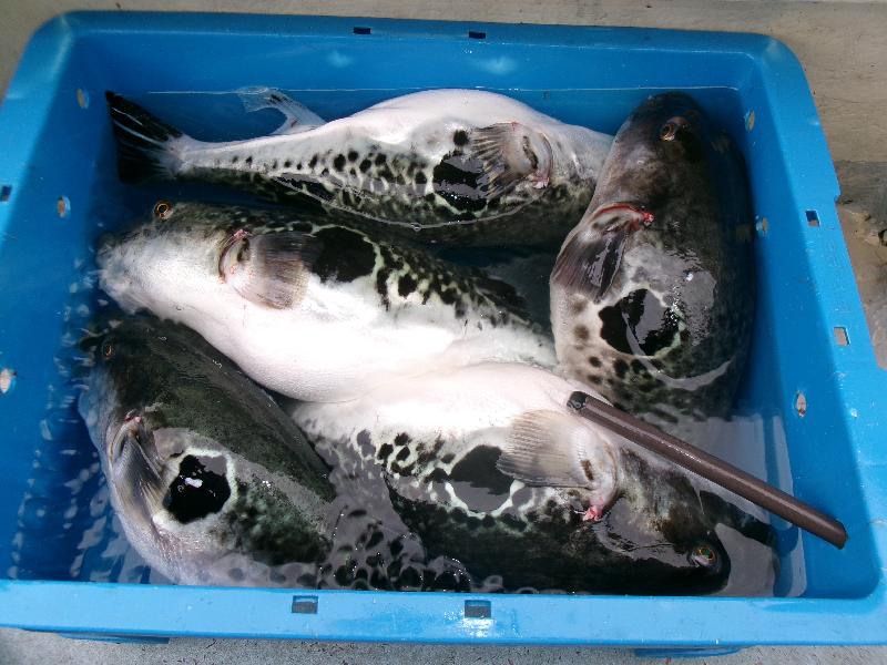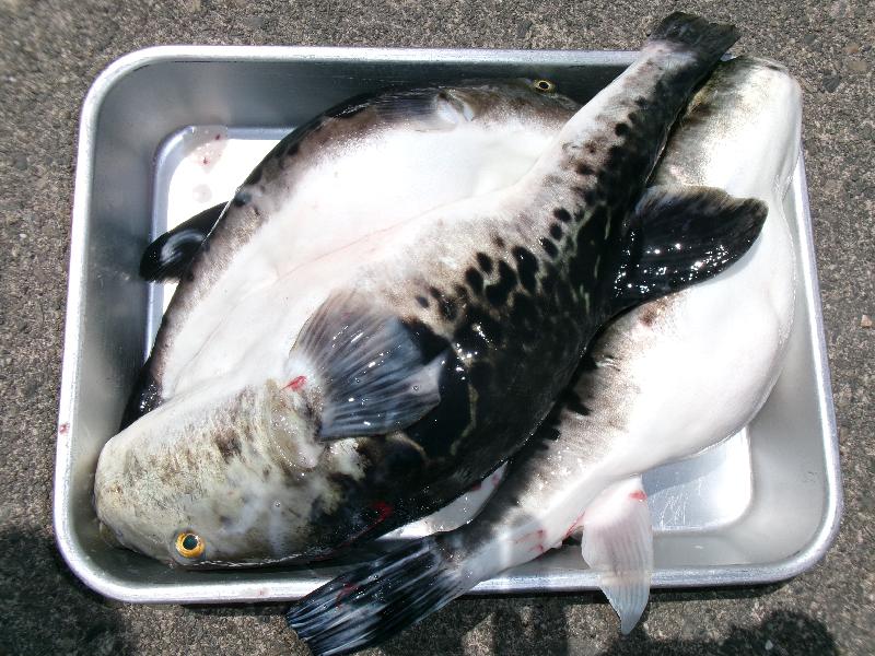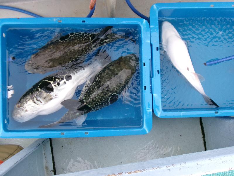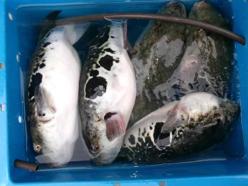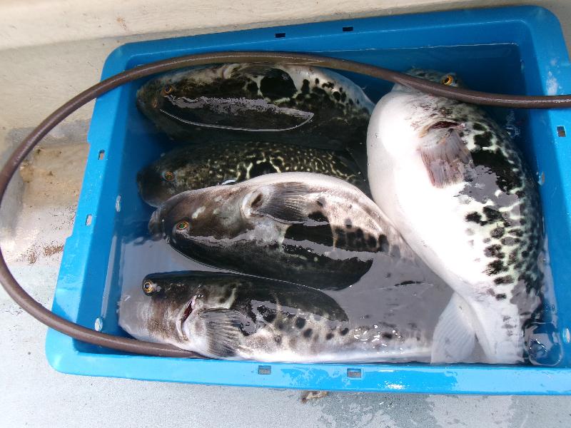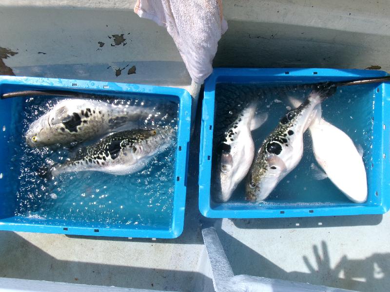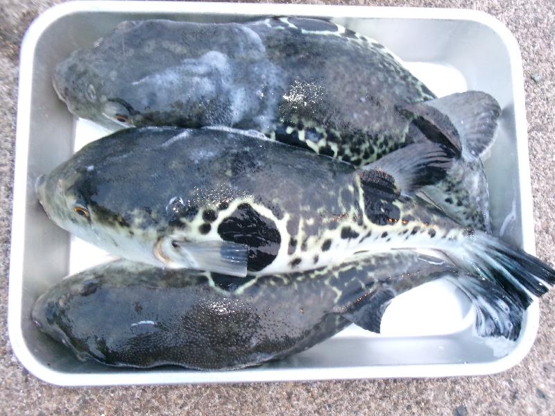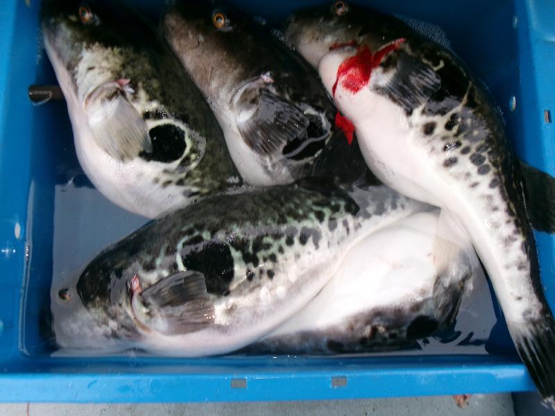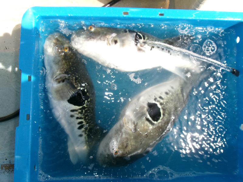 今日も流し釣りだったので港で裁くため10:40頃沖上り 釣果トラフグ(0.8〜2.0kg)0〜5匹 |