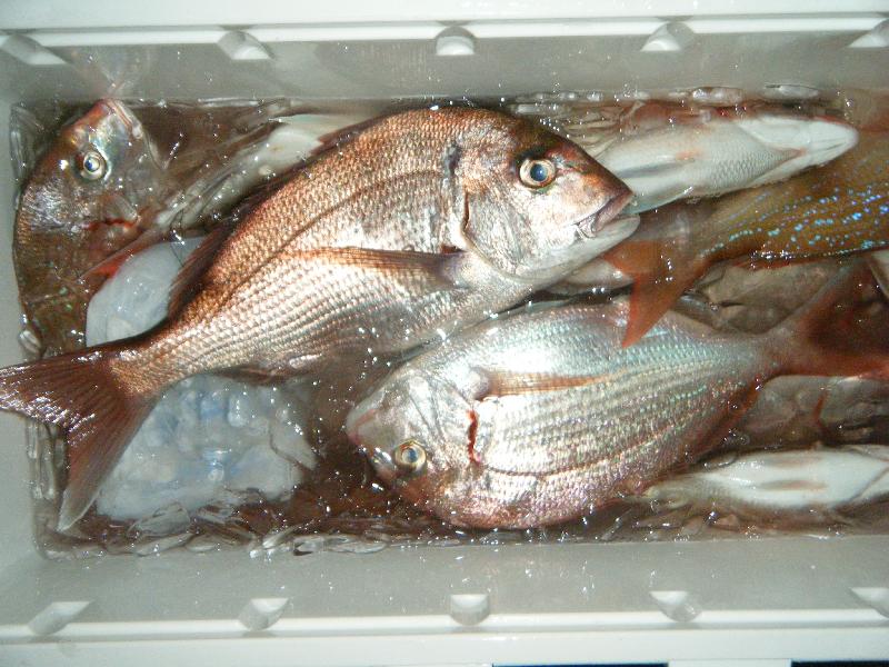 午前便 松阪市の笠原さん2人 マハタ(30〜35cm)2・6匹 キジハタ(35〜40cm)1・1匹 クエ(50cm)1匹 ホウキハタ(43cm)1匹 オニカサゴ(40cm)1匹 マトウダイ・カサゴ |
