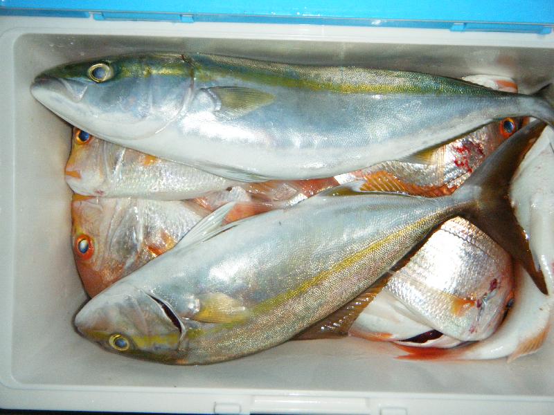 奈良県大和郡山市の植西さん他 タイ(25〜50cm)5〜20匹 ワラサ(70cm)1匹 ハマチ(45〜50cm)0〜2匹 カンパチ(45〜50cm)0〜1匹 オモリ40〜60号 |
