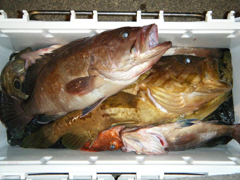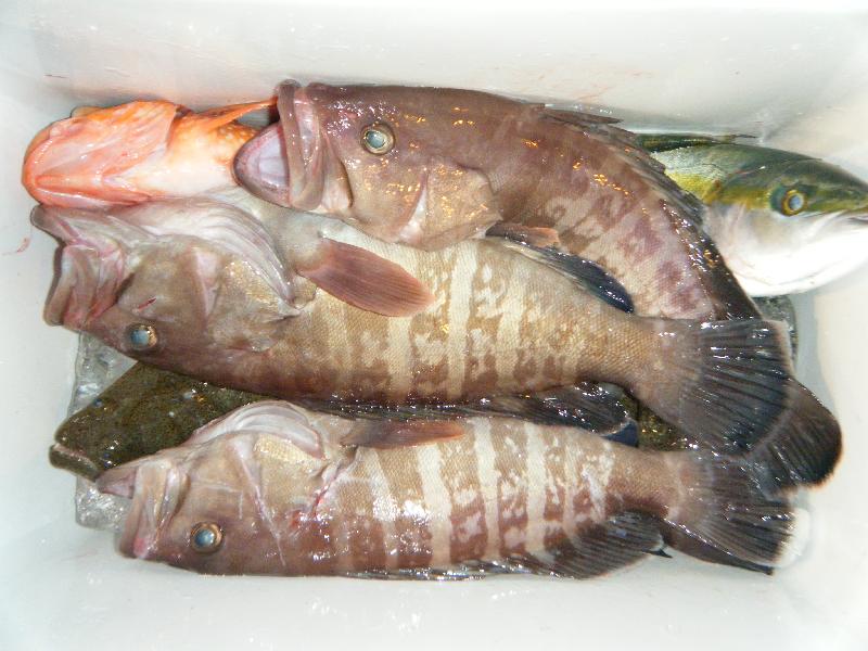 名古屋市の利光さん他 ホウキハタ(28〜53cm)・マハタ(28〜50cm)・ヒラメ・ハマチ・カサゴなど混ぜて1人4〜10匹 |