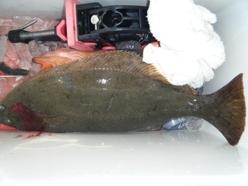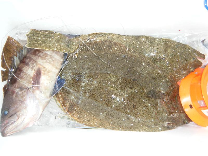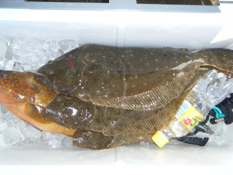 愛知県豊田市の稲垣さん2人 ヒラメ(45〜49cm)1・3匹 外道にキジハタ |