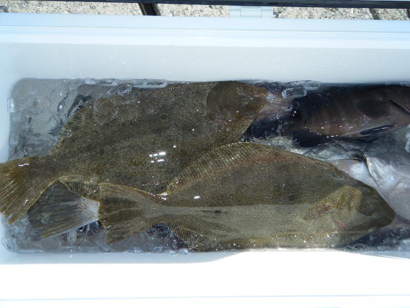 午前便 大阪市の木田さん他 ヒラメ(35〜50cm)全員1人2匹づつ 外道にマトウダイ・カサゴ・ハタマスなど |