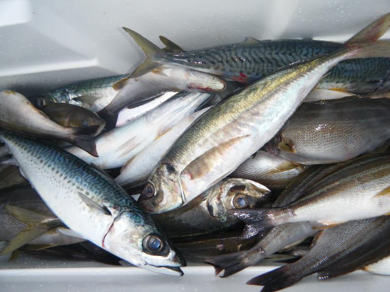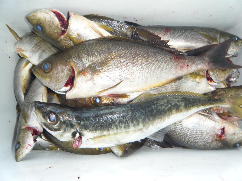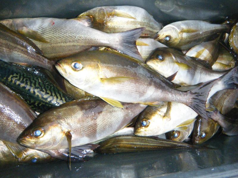 午後便 愛知県愛西市の平野さん他 タイ(23〜40cm)良い人38匹 カンパチ(35〜40cm)0〜2匹 ハマチ(45〜48cm)0〜3匹 他にオオモンハタ・ウマズラなど |