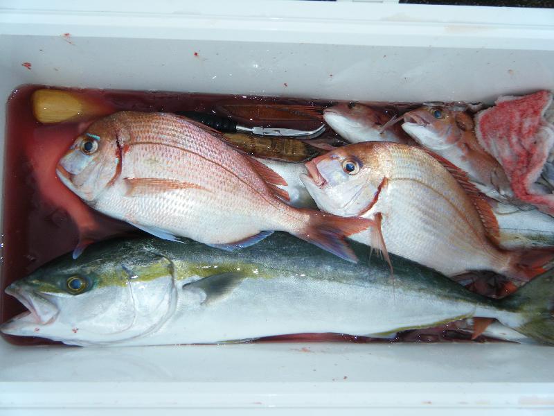 午前便 津市の山本さん他 タイ(23〜42cm)5〜17匹・ハマチ(40〜45cm)0〜4匹 |