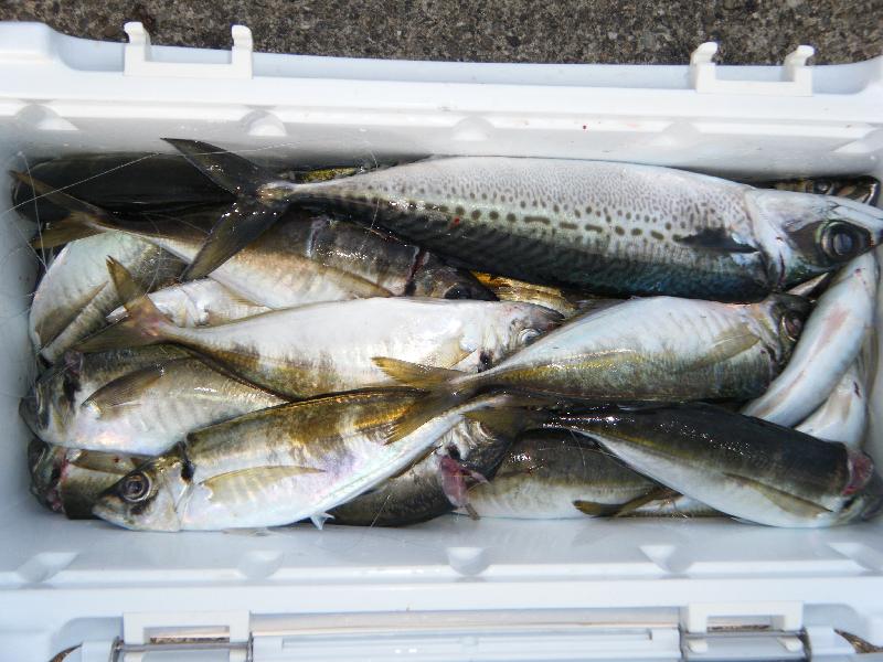 名張市の花田さん他 タイ(23〜40cm)5〜40匹・ハマチ(43cm前後)0〜2匹・ヨコワ(44cm)1匹・真アジ(35〜45cm)8〜25匹 外道の大アジうれしい (*^ワ^*) |
