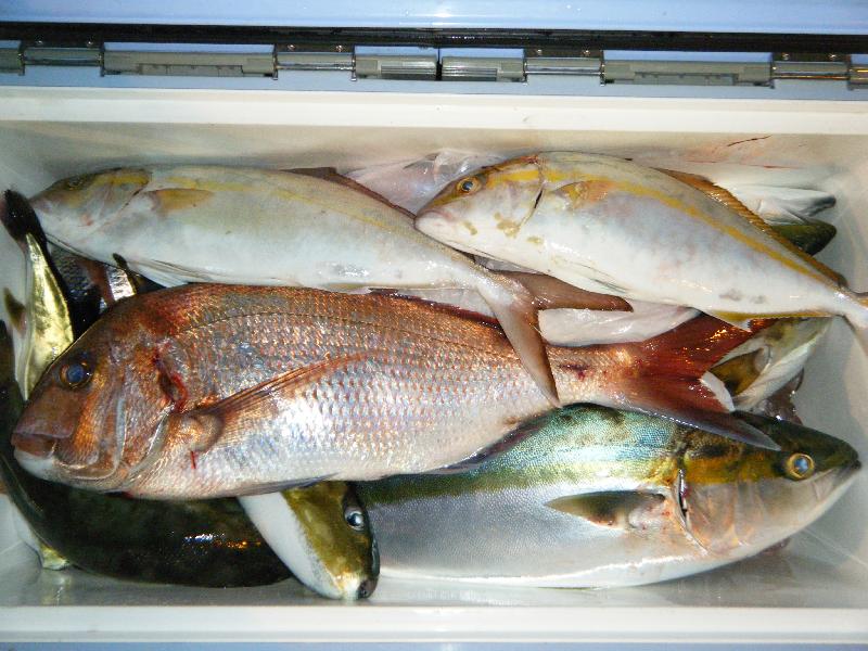 岐阜県大垣市の松岡さん他 マダイ(30〜64cm)0〜4匹 イシダイ(57cm)1匹 ニベ(40〜70cm)0〜2匹 |
