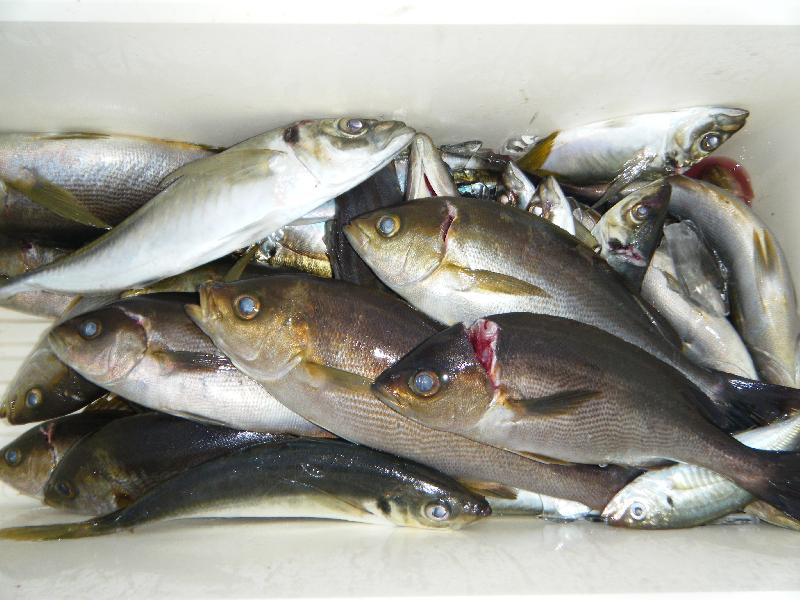 午後便 桑名市の水谷さん他 タイ(23〜45cm)2〜12匹 ワラサ(65〜70cm)0〜1匹 ハマチ(45cm前後)0〜2匹 カンパチ(40cm)1匹 底潮が全然動かず食い難かったです。 |