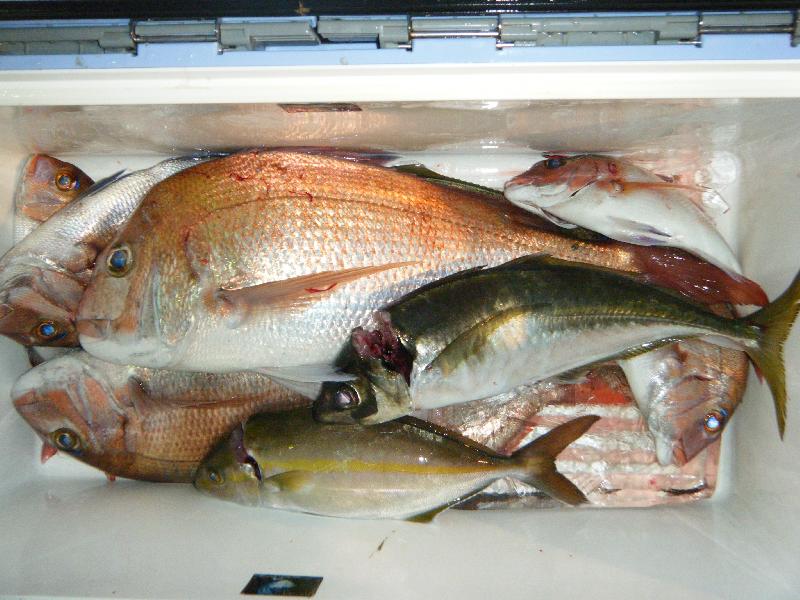 愛知県愛西市の八木さん他 ハタマス(25〜50cm)0〜3匹 ホウキハタ(30〜34cm)0〜1匹 キジハタ(36cm)船中1匹 クエマス(30cm)船中1匹 ヒラメ(45〜60cm)0〜1匹 オニカサゴ(35〜39cm)0〜2匹 カサゴ(25〜30cm)2〜9匹 マトウダイ(25〜36cm)0〜3匹 |