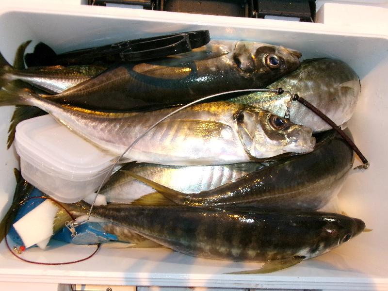 沖上り直前に大アジ顔を見せ1時間延長 アジ(40cm前後)良い人10匹 |