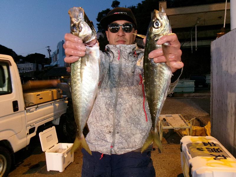 午後便 今日は大アジ釣れました(*^▽^*) 釣果 アジ(35〜45cm)7〜35匹 ゲストにマダイ・ウマズラ |
