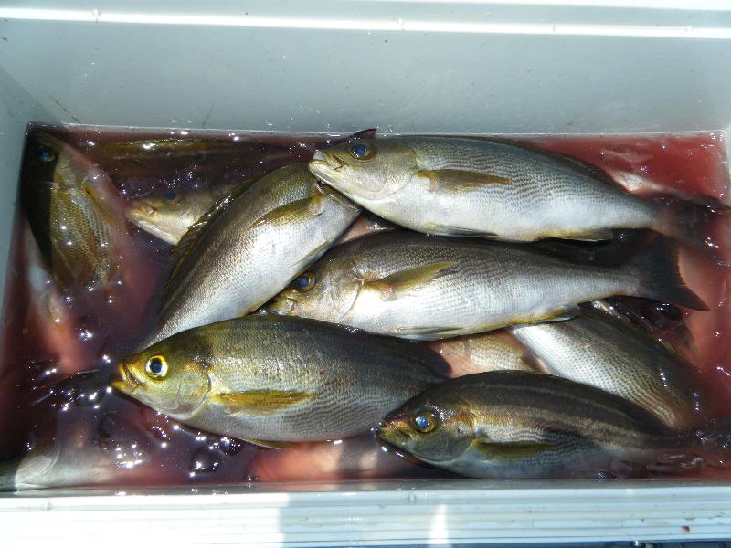 午後便 名古屋市の宮脇さん他 タイ(24〜50cm)10〜21匹 ハマチ(45〜48cm)0〜3匹 キジハタ(50・60cm)各1匹づつ |