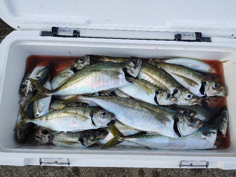 午後便 見須さん他 真アジ(25〜42cm)良い人40匹以上 オモリ80号 大きな真アジが多かったので、クーラーに氷が入らないくらい満タンの人も・・・(^^)v |