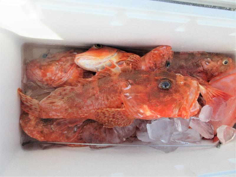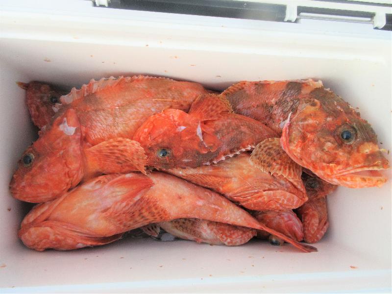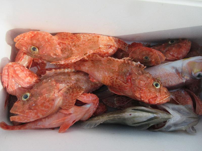 河野さん他 オニカサゴ(24〜42cm)4〜14匹 良型のオニが良く交じり(^^)v 上潮が速くオモリ200号使用 |