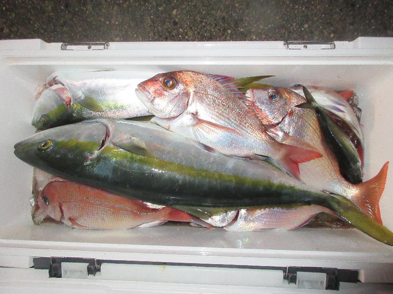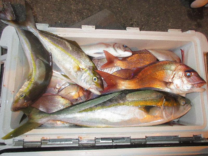 | 吉田さん他 タイ(25〜45cm)良い人20匹・ハマチ(43〜63cm)0〜3匹外道にヒラメ・スマカツオ・など オモリ40号 |