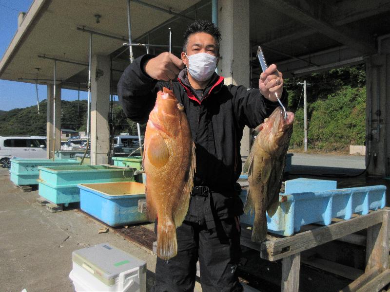 | 宮澤さん2人 タイ(26〜42cm)21〜21匹・ハマチ(45〜50cm)7〜8匹・シオ(40cm前後)1〜2匹 風と波があったが、ポツポツ魚が釣れ少し早めに沖上りしました。 オモリ30〜40号 |