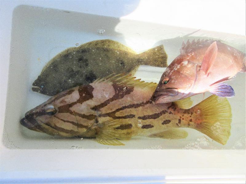 村上さん他 キジハタ(40〜53cm)・ホウキハタ(40〜50cm)・ヒラメ(40〜63cm)・マハタ・オオモンハタなど バラシも多くあった様だが、楽しんで頂けた様です。
